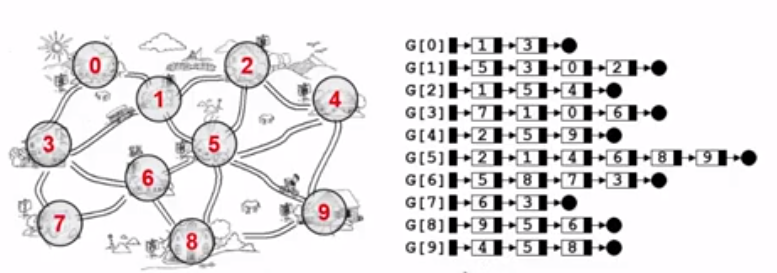 - 节约稀疏图的空间(需要N个头指针+2E个结点,E为边数)